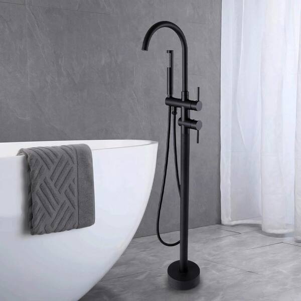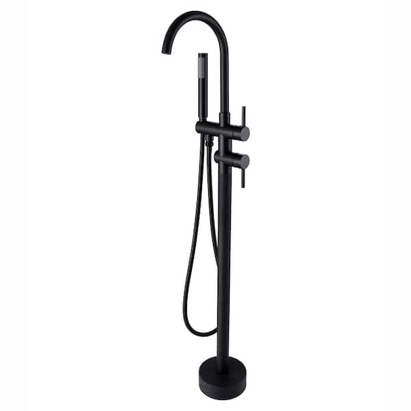 Single-Handle Freestanding Waterfall Tub Filler Bathroom Tub Faucet with Handheld Shower in Matte Black
