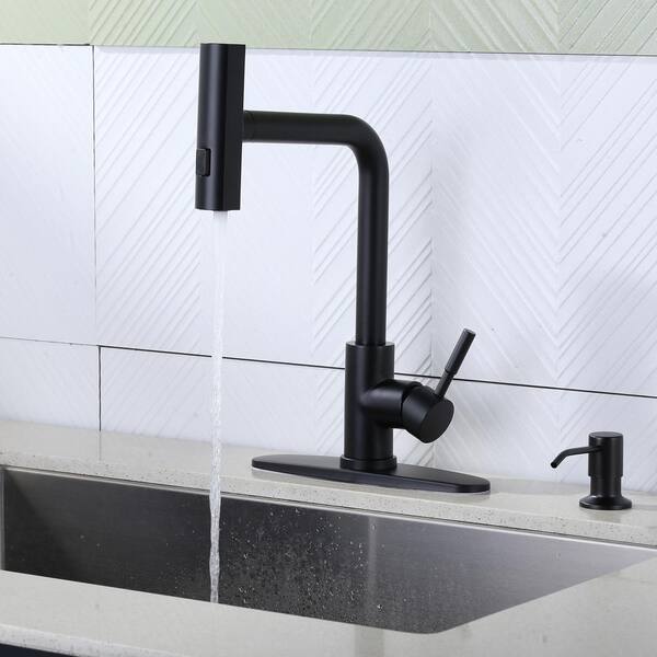 Single-Handle High Arc Pull Down Sprayer Kitchen Faucet with Deckplate in Matte Black
