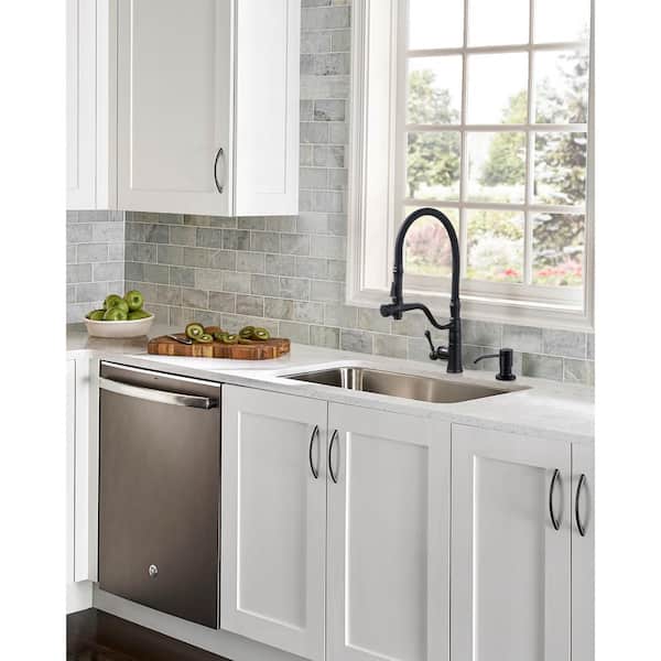 Single-Handle High-Arc Pull Down Sprayer Kitchen Faucet with Soap Dispenser in Solid Brass in Matte Black