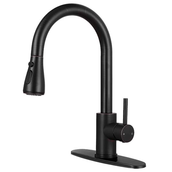 Single-Handle Kitchen Faucet Pull Down Sprayer Kitchen Faucet with Deck Plate in Oil Rubbed Bronze