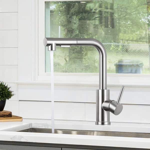 Single Handle Kitchen Faucet Pull Out Sprayer Kitchen Faucet with Deckplate Included in Brushed Nickel