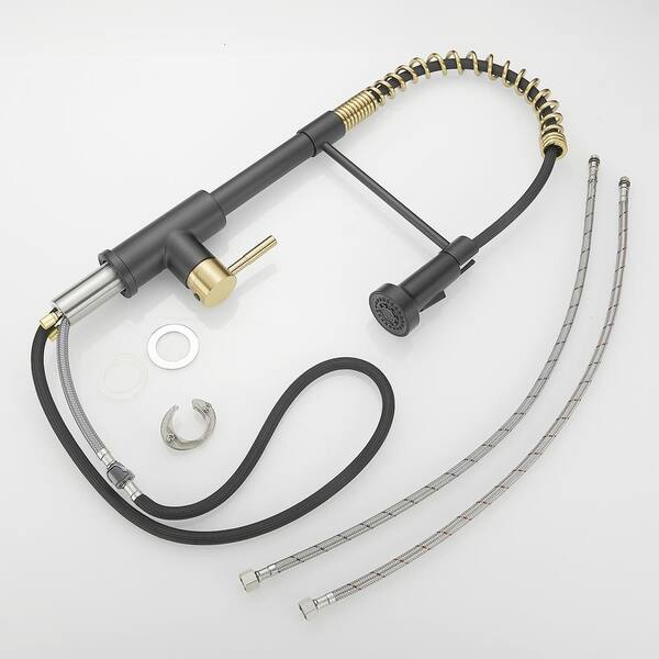 Single Handle No Sensor Pull Down Sprayer Kitchen Faucet in Matte Black and Gold