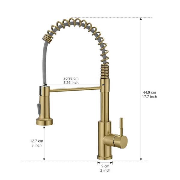Single Handle Pull Down Sprayer Kitchen Faucet Stainless Steel Pull Out Spring Sink Faucets in Brushed Gold