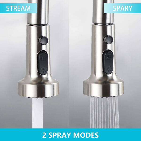 Single Handle Pull Down Sprayer Kitchen Faucet, Stainless Steel, with 360° Swivel Cold Hot Water Tap, in Silver