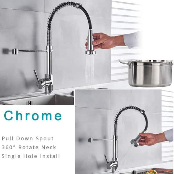 Single Handle Pull-Down Sprayer Kitchen Faucet in Polished Chrome