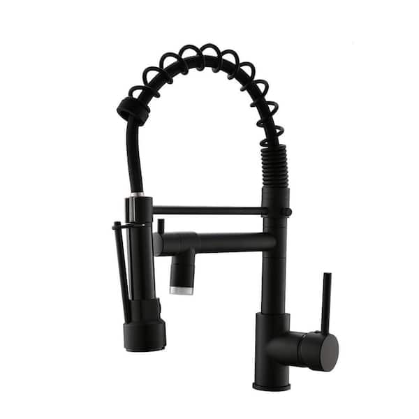 Single Handle Pull Down Sprayer Kitchen Faucet with 360° Rotation and LED Light in Matte Black