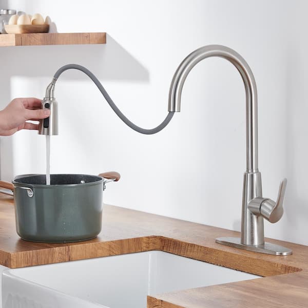 Single Handle Pull-Down Sprayer Kitchen Faucet with Flexible and Power Clean in Brushed Nickel