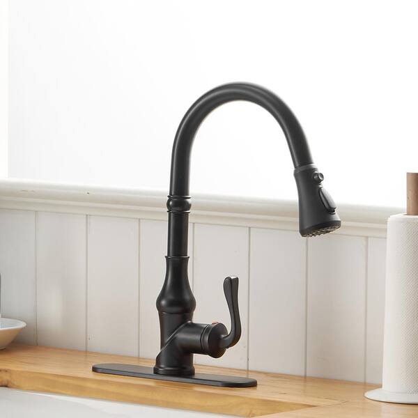Single Handle Pull-Down Sprayer Kitchen Faucet with Flexible and Power Clean in Matte Black