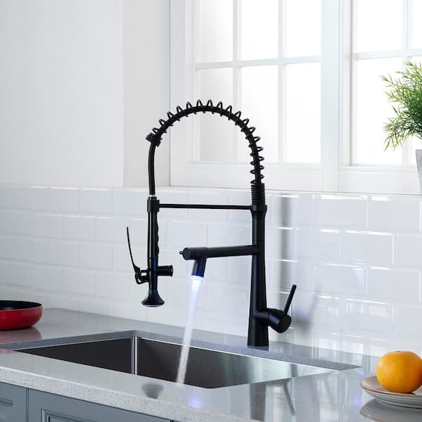 Single-Handle Pull-Down Sprayer Kitchen Faucet with LED Light in Matte Black