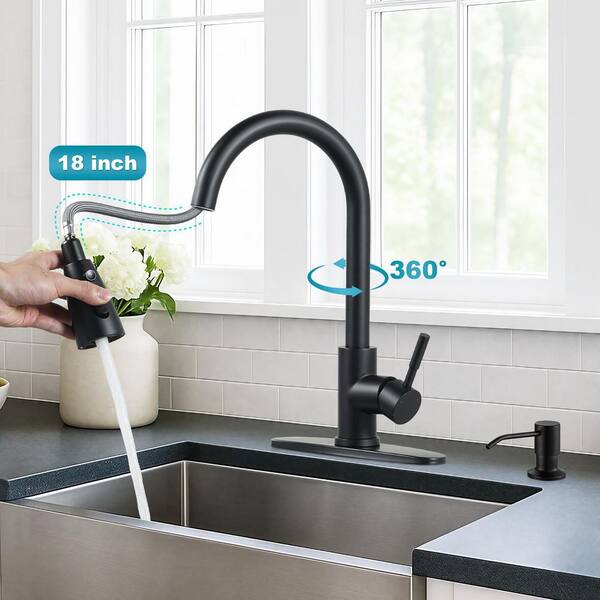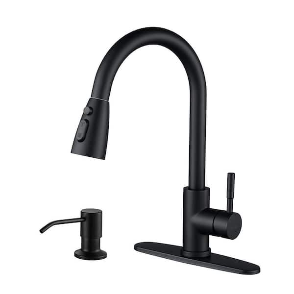 Single-Handle Pull Down Sprayer Kitchen Faucet with Soap Dispenser in Black