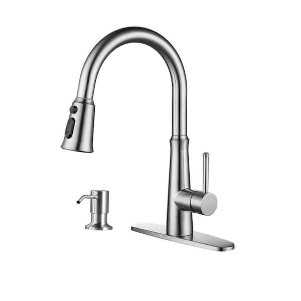 Single Handle Pull Down Sprayer Kitchen Faucet with Soap Dispenser in Brushed Nickel