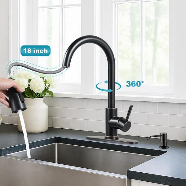 Single-Handle Pull Down Sprayer Kitchen Faucet with Soap Dispenser in Oil Rubbed Bronze