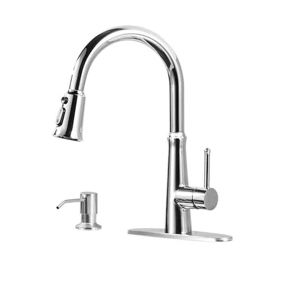 Single Handle Pull Down Sprayer Kitchen Faucet with Soap Dispensor in Chrome