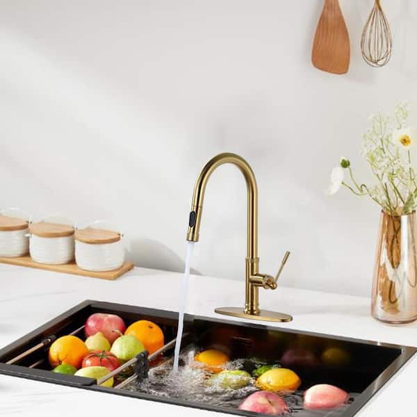 Single Handle Pull Down Sprayer Kitchen Faucet with Spray, Pull Out Spray in Brass