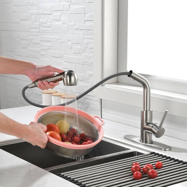 Single Handle Pull-Down Sprayer Kitchen Faucet with in Brushed Nickel Liftable Power Clean and Reflex Spot