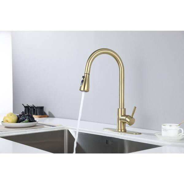Single Handle Pull Out Sprayer Kitchen Faucet in Brushed Gold, Residential Stainless Steel Kitchen Sink Faucet