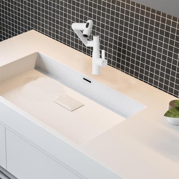 Single Handle Single Hole 360-Degree Rotary Bathroom Faucet with Temperature Display in White