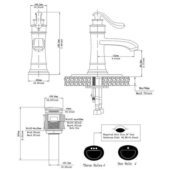 Single Handle Single Hole Bathroom Faucet Modern Sink Taps with Pop-Up Drain Kit and Deckplate in Oil Rubbed Bronze