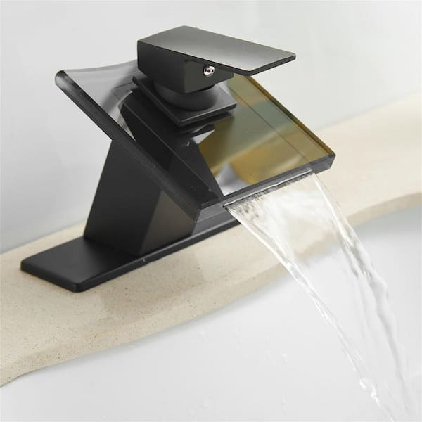 Single Handle Single Hole Bathroom Faucet Waterfall Modern Sink Basin Taps with Deckplate Included in Matte Black
