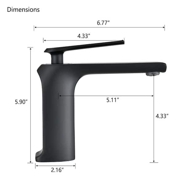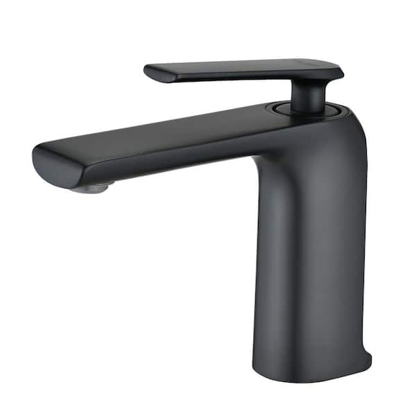 Single Handle Single Hole Bathroom Faucet in Black Matte Black, Brass Faucet Without Deck Plate