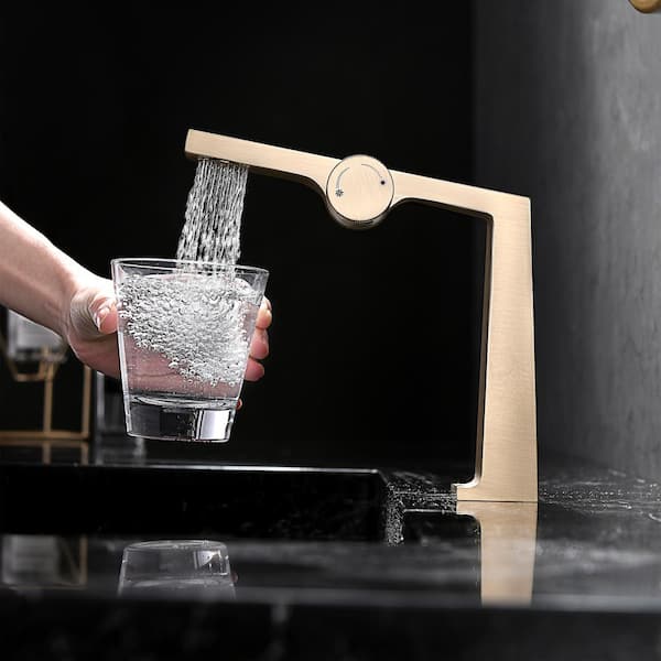 Single Handle Single Hole Bathroom Faucet in Brushed Gold