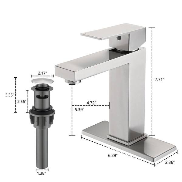 Single Handle Single Hole Bathroom Faucet with Deckplate and Drain in Brushed Nickel