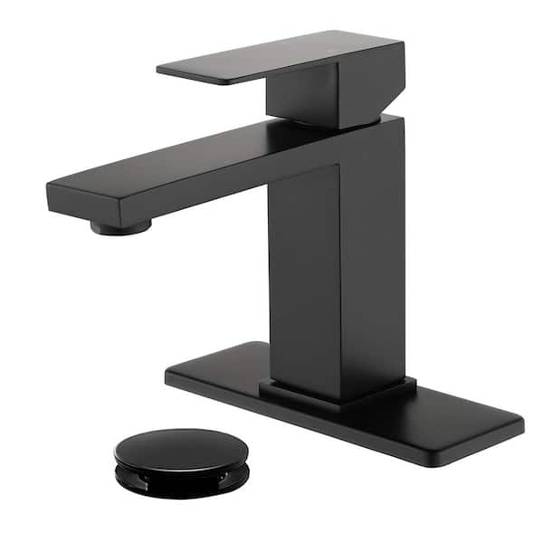 Single Handle Single-Hole Bathroom Faucet with Drain Assembly in Matte Black