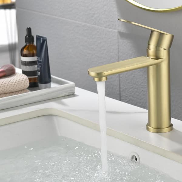Single Handle Single Hole Bathroom Faucet with Golden Brushed