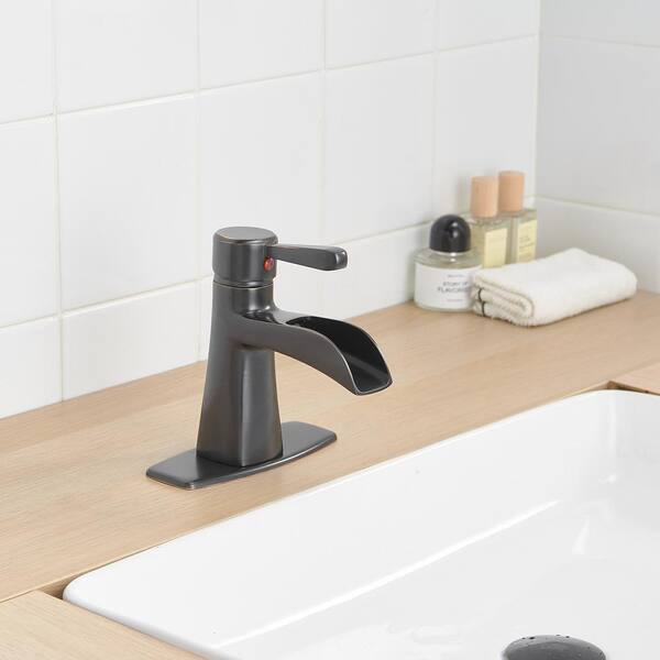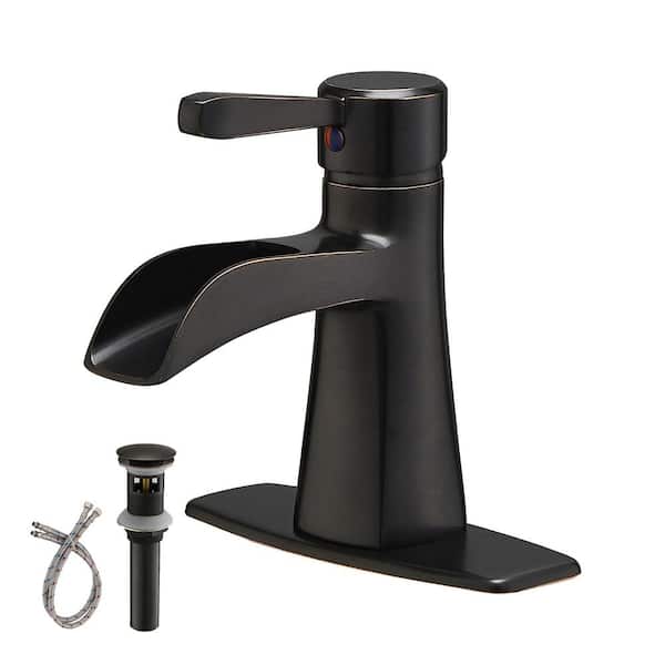 Single Handle Single Hole Bathroom Faucet with Waterfall and Drain Assembly in Oil Rubbed Bronze