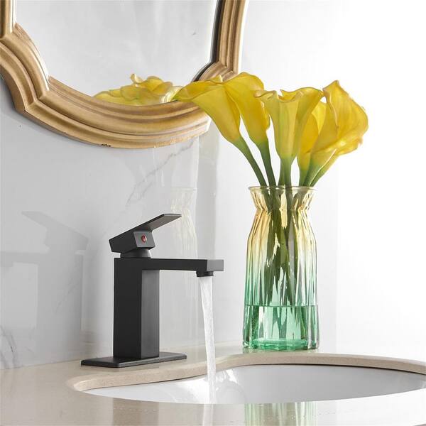 Single-Handle Single-Hole Deck Mount Bathroom Sink Faucet with Deckplate Included in Matte Black