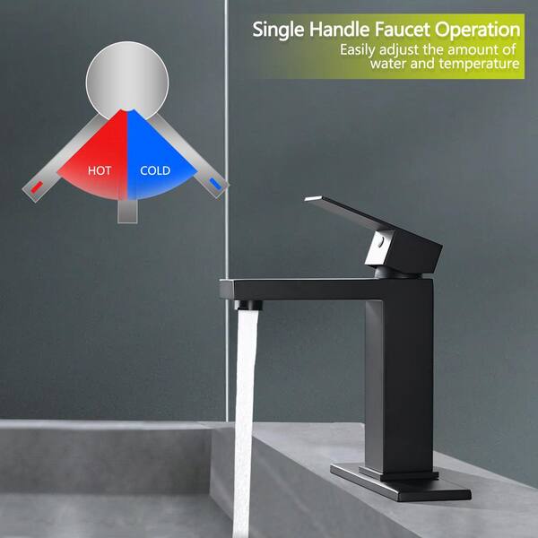 Single Handle Single Hole Stainless Steel Bathroom Sink Faucet, with Deckplate and Drain Assembly in Matte Black