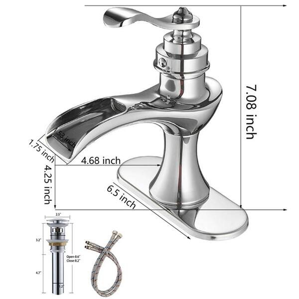Single-Handle Single-Hole Waterfall Bathroom Sink Faucet with Pop-Up Drain Kit and Deckplate Included in Polished Chrome