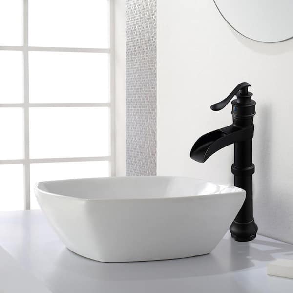Single Handle Single Hole Waterfall Bathroom Vessel Sink Faucet with Pop-Up Drain Assembly Included in Matte Black