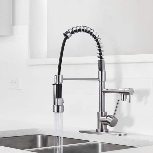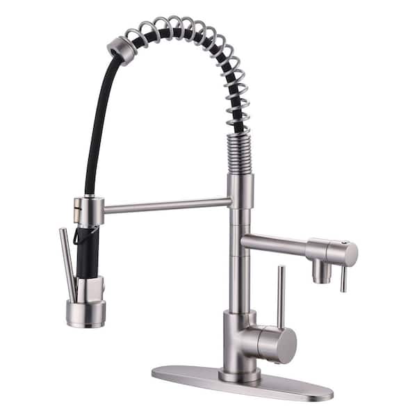 Single Handle Spring Pull Out Sprayer Kitchen Faucet Deckplate Included in Brushed Nickel