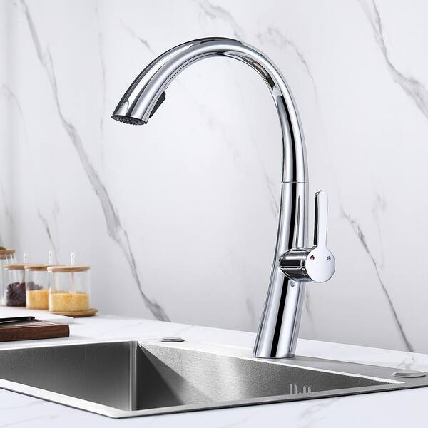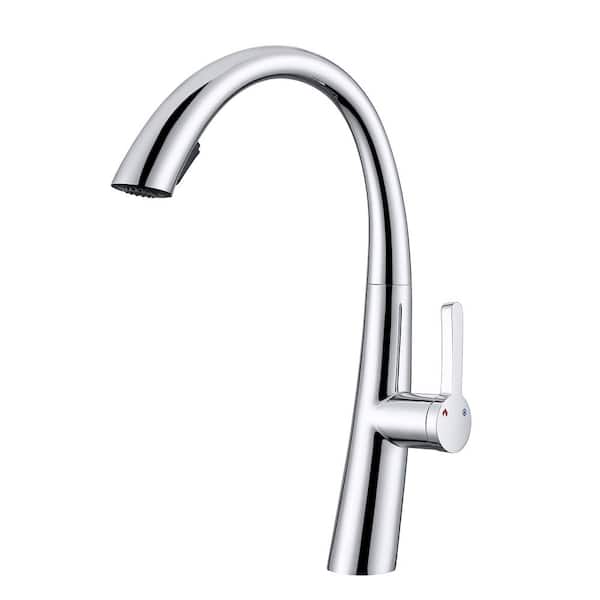 Single Handle Stainless Steel Pull Out Sprayer Kitchen Faucet Deckplate Excluded in Chrome