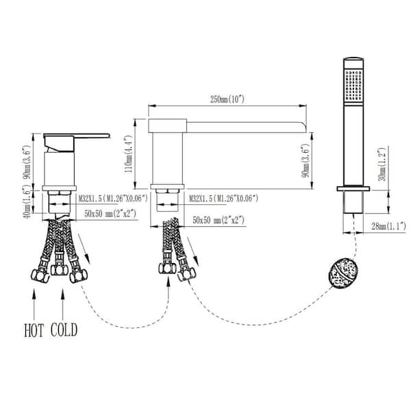 • Waterfall bathtub faucet with hand sprayer for comfort bathing.