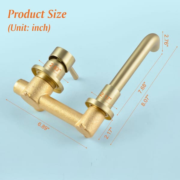 Single Handle Wall Mounted Bathroom Faucet 2-Holes Brass Bathroom Sink Basin Faucets with Swivel Spout in Brushed Gold