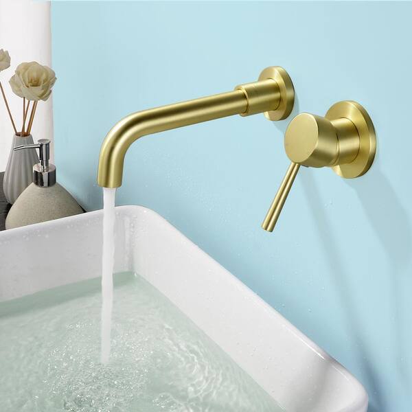 Single Handle Wall Mounted Bathroom Faucet with 360° Swivel Spout in Brushed Gold