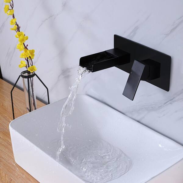 Single Handle Wall Mounted Bathroom Faucet with Waterfall Flow in Matte Black
