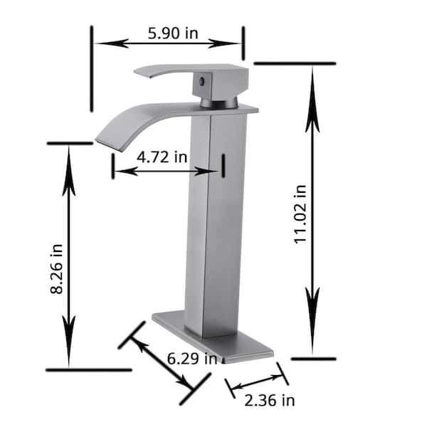 Single Handle Waterfall Bathroom Vessel Sink Faucet Single Hole Modern Stainless Steel High Tall Taps in Brushed Nickel
