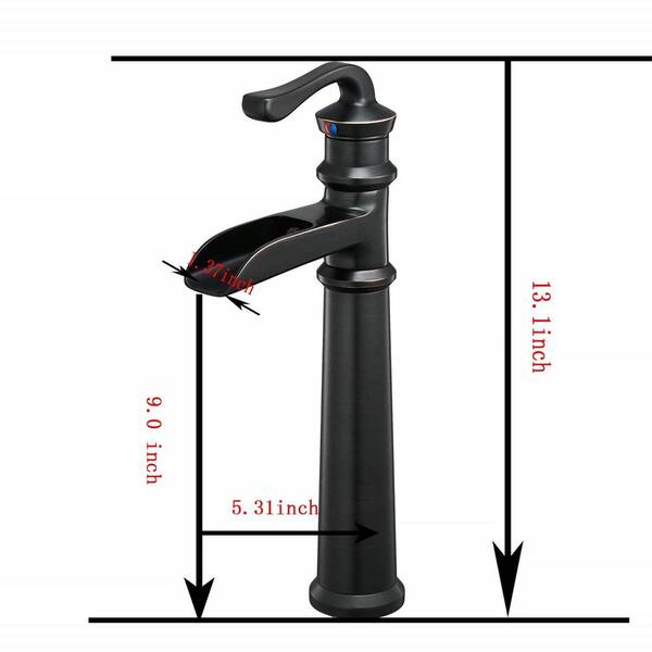Single Handle Waterfall Bathroom Vessel Sink Faucet Single Hole with Pop-Up Drain Assembly Included in Oil Rubbed Bronze