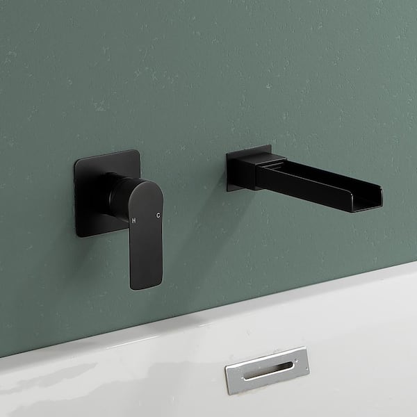 Single Handle Waterfall Wall-Mount Roman Tub Faucet with Extra Long Spout in Matte Black
