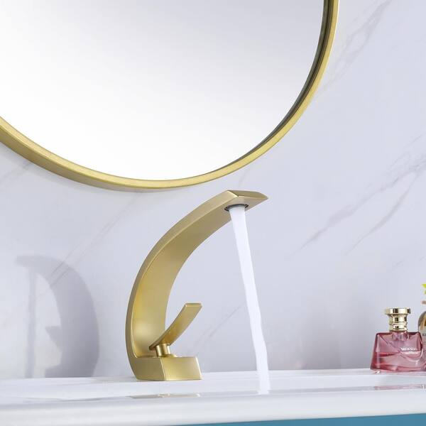 Single Hole Single-Handle Bathroom Faucet with Deck Plate in Brushed Gold