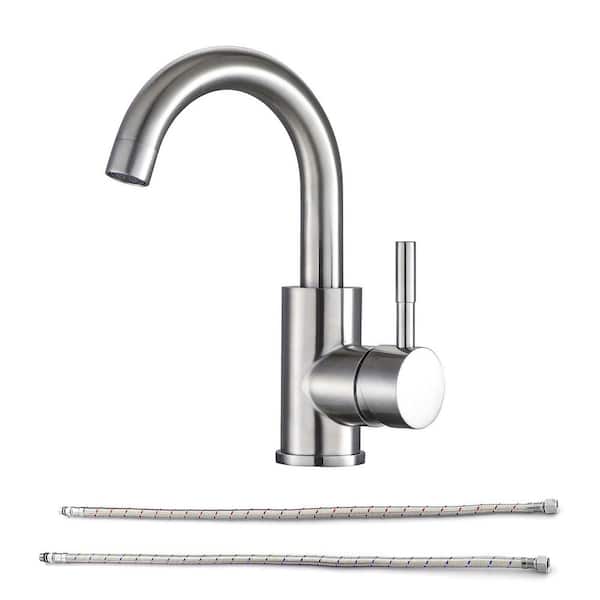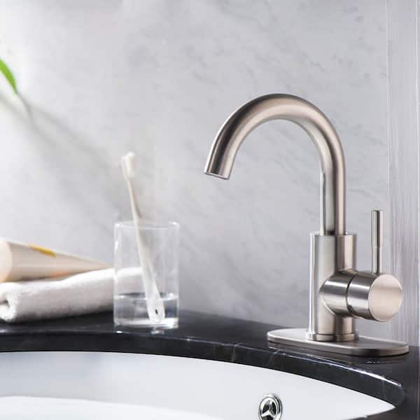 Single Hole Single-Handle Bathroom Faucet with Deck Plate in Brushed Nickel