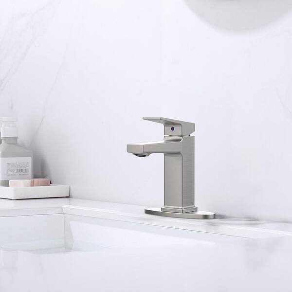 Single Hole Single-Handle Bathroom Faucet with Deck Plate in Brushed Nickel