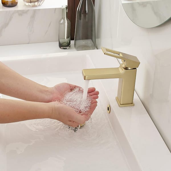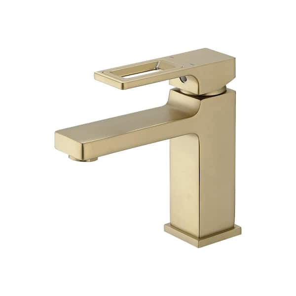 Single Hole Single-Handle Bathroom Faucet with Drain Assembly in Brushed Gold