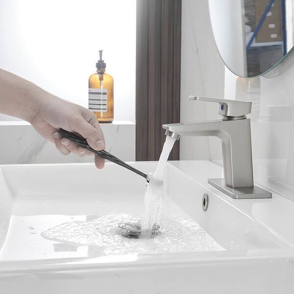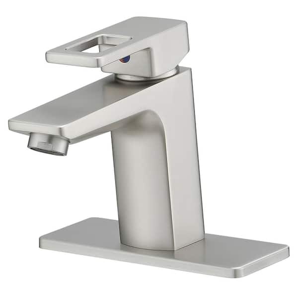 Single Hole Single-Handle Bathroom Faucet with Drain Assembly in Brushed Nickel