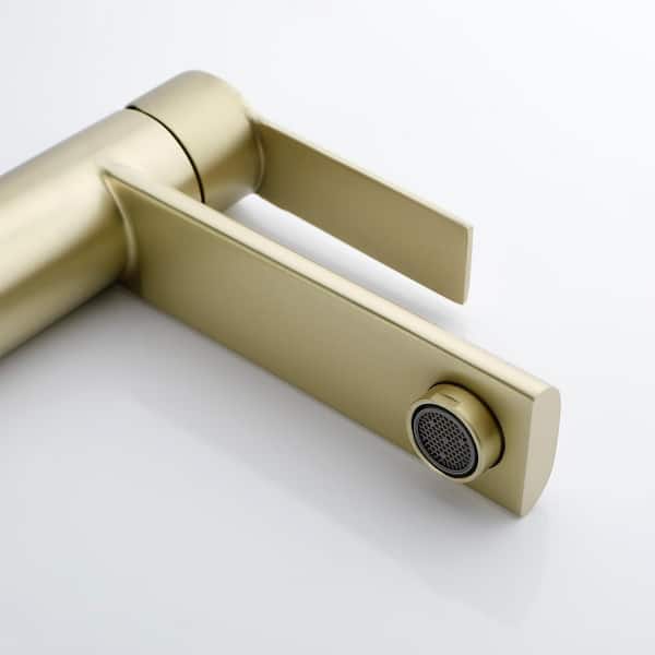 Single Hole Single Handle Bathroom Vessel Sink Faucet in Brushed Gold With Supply Hose