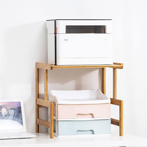 Single layer Bamboo Printer Stand with Wheels in Wood Color