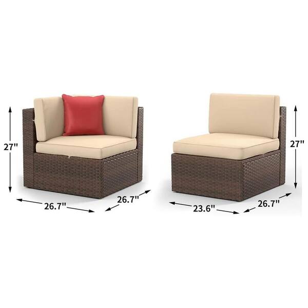 2-Pieces Outdoor Wicker Patio Conversation Set Rattan Sectional Sofa with Beige Cushions for Small Size (Brown)